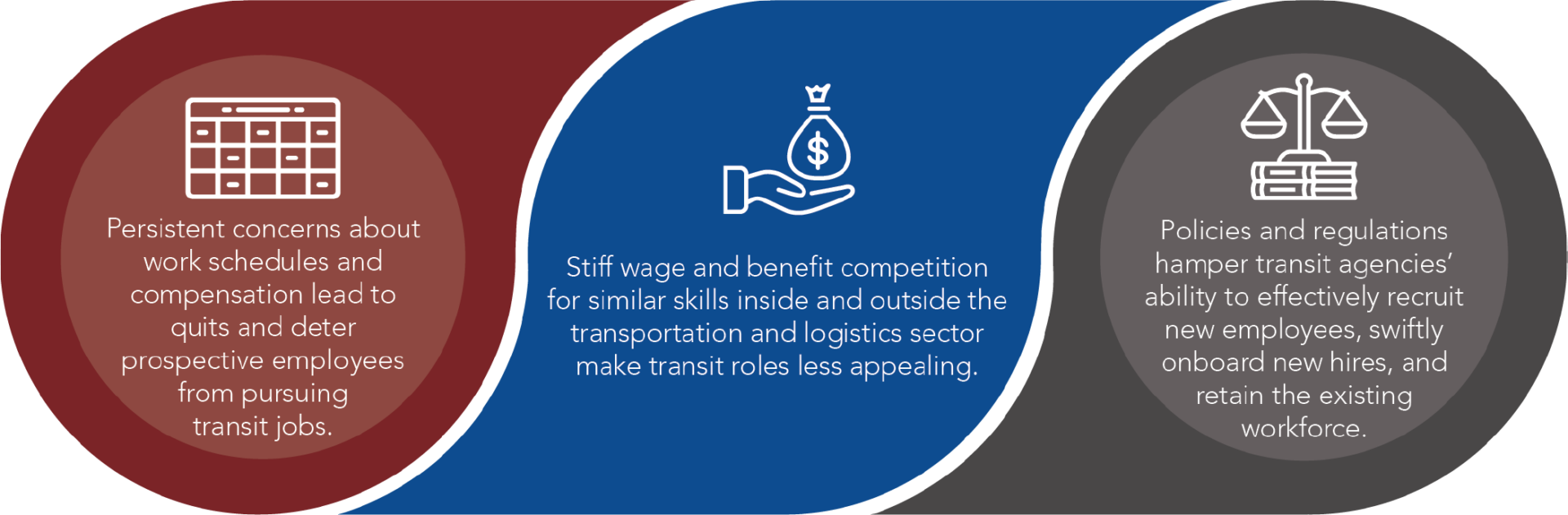 The near-term focus for most agencies is straightforward: continue to fill seats, both in buses and in employee positions. For most, compensation and training are keys to the short game. But the longer-term strategy requires something more fundamental—a recognition that the transit workforce is changing, and agencies need to change with it. Workers today have different expectations about work-life balance, need accommodation for family and caregiving responsibilities, and have more employment options than in the past.
