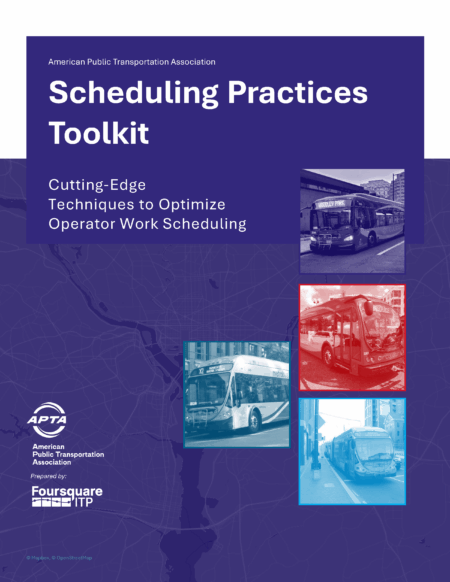Foursquare ITP worked with the American Public Transportation Association (APTA) to develop the toolkit to guide agencies through an assessment of their scheduling practices and basic steps in developing strategies to enhance workforce scheduling processes and improve employee retention. Transit agencies across the country face a workforce shortage exacerbated by the demanding nature of operator schedules. Operators struggle with issues like inadequate rest periods, excessive overtime, and limited flexibility, leading to fatigue, burnout, and high turnover. Foursquare ITP recognized the need for a comprehensive guide to address these systemic issues and ensure sustainable workforce solutions.
