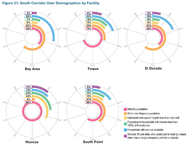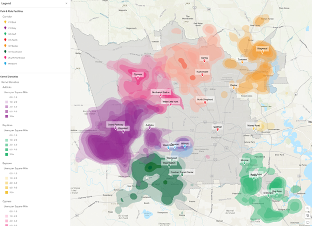 - Georeferenced registered addresses and performed demographic analyses for each Park & Ride facility.