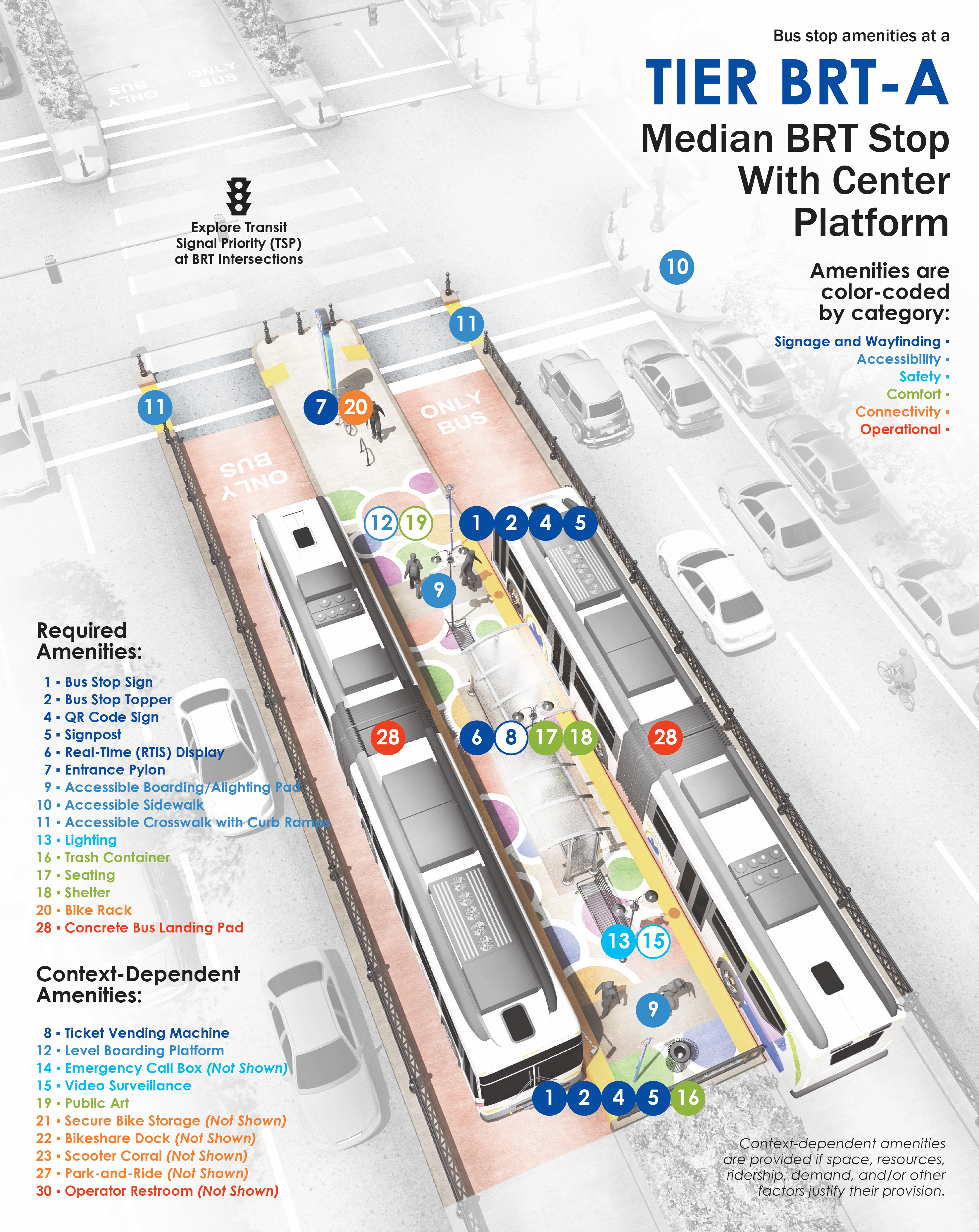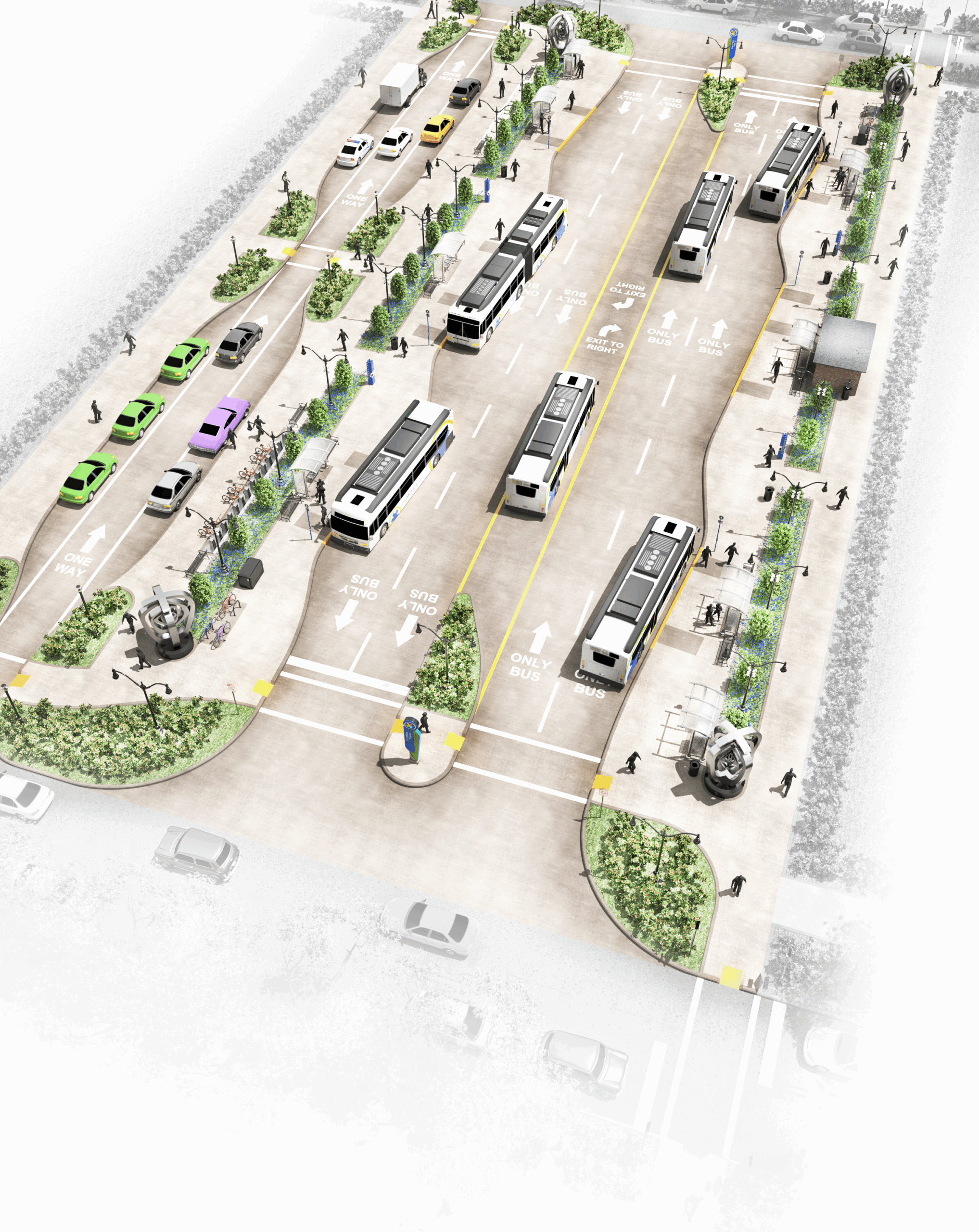 Our team engaged bus operators and multiple agency departments to understand the design priorities for various proposed bus stop amenities. These included bus stop signs, real-time information displays, benches and shelters, and many other amenities. With SORTA’s priorities captured, the team applied categorical weights to every bus stop amenity and conducted an underlying demographic analysis to propose an improvement schedule to bus stops across the network. We developed and shared detailed graphical renderings of several bus stop options. We also developed wayfinding concepts, including scalable bus stop signs and a unified pylon design for transit centers that are flexible enough to employ across the bus network.